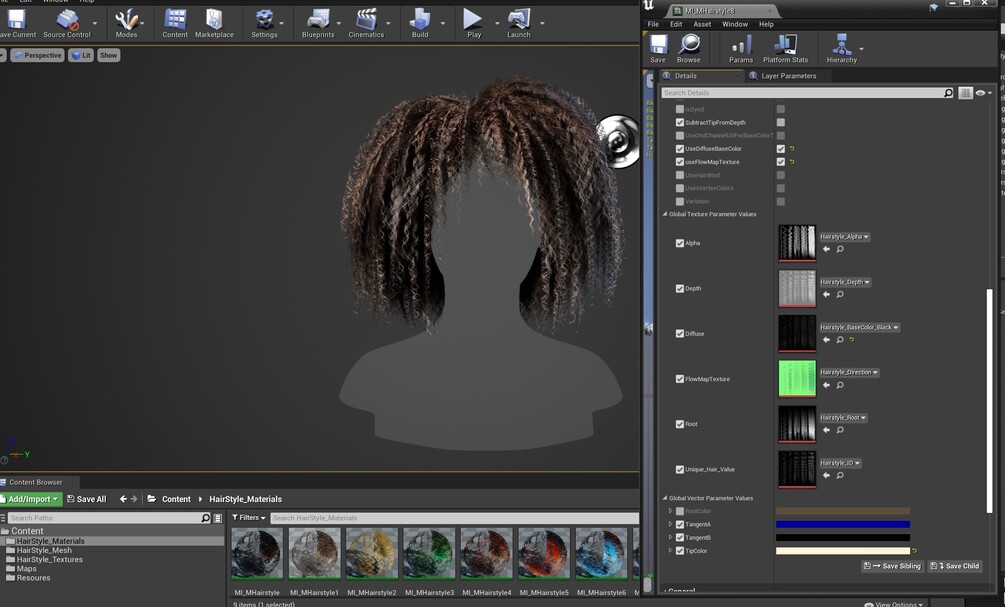 Easily change the color of the hairstyle, tips/roots, flame, ..., with UE4 shader (include in UE4 scene)