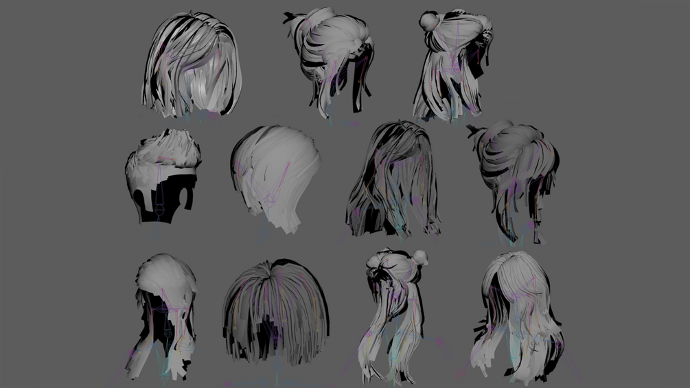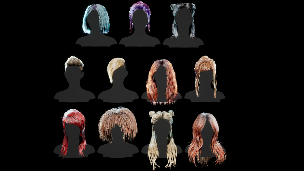 Realistic hairstyle pack (11 pieces). Low-poly / Game-ready / PBR / Cards / Rigging+Skinning / Real-Time