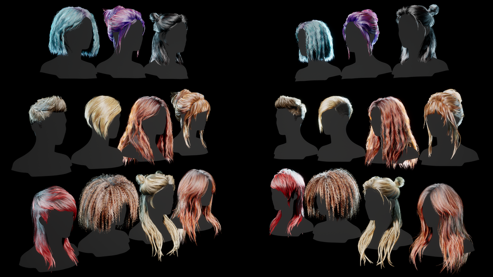 Hairstyle pack. Low-poly / Game-ready / PBR