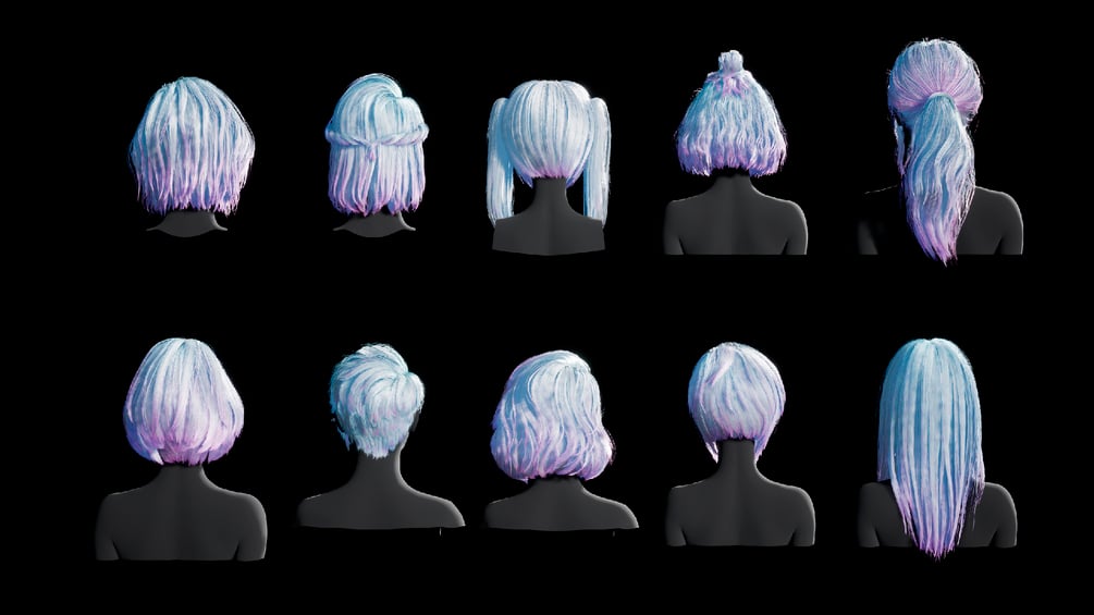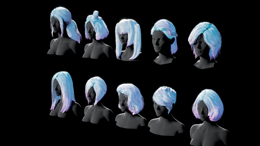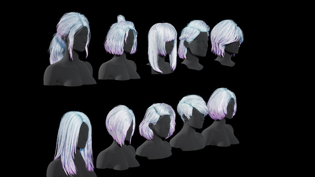 Stylized hairstyle pack №1 (10 pieces). Low-poly / Game-ready / PBR / Cards / Rigging+Skinning / Real-Time