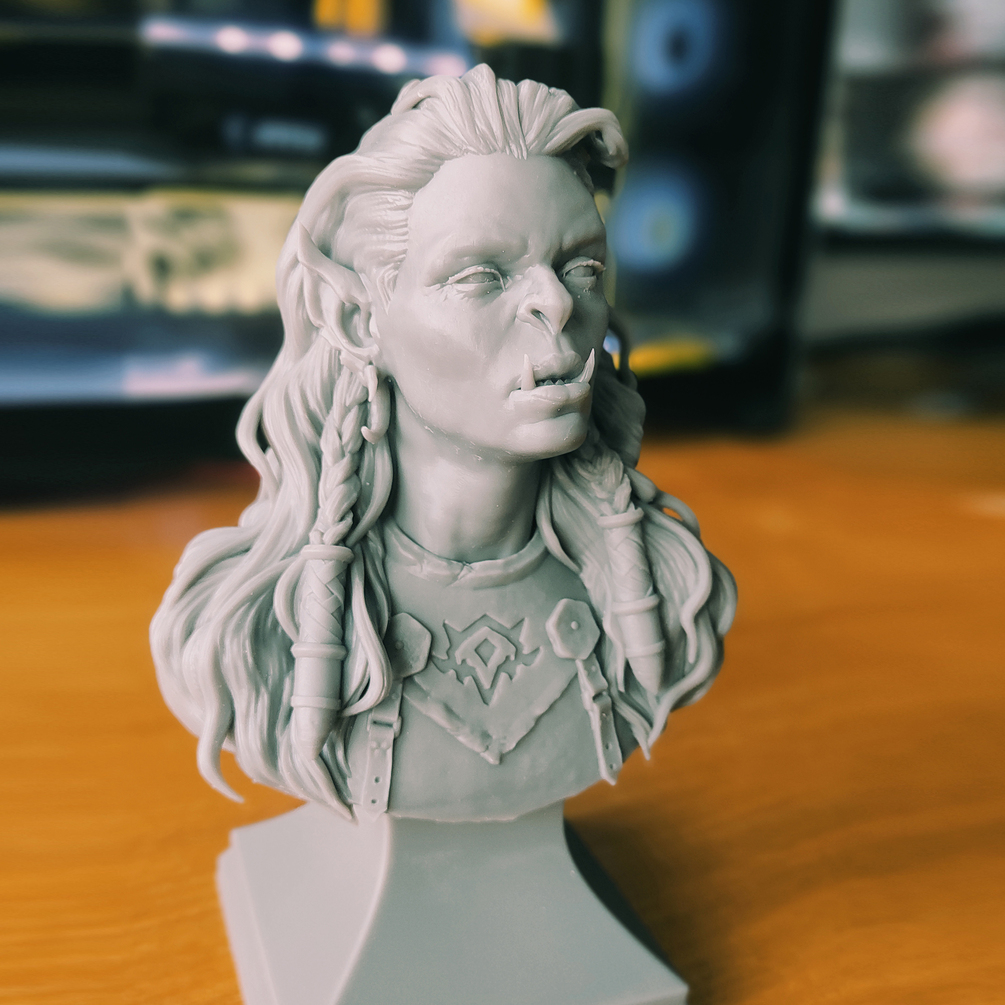 3D printable Orc bust 117mm, scene 168mm. Test print scene 168mm Elegoo Saturn 3 Ultra 12k (The printed model in the photo is not glued and without cosmetic treatment ).